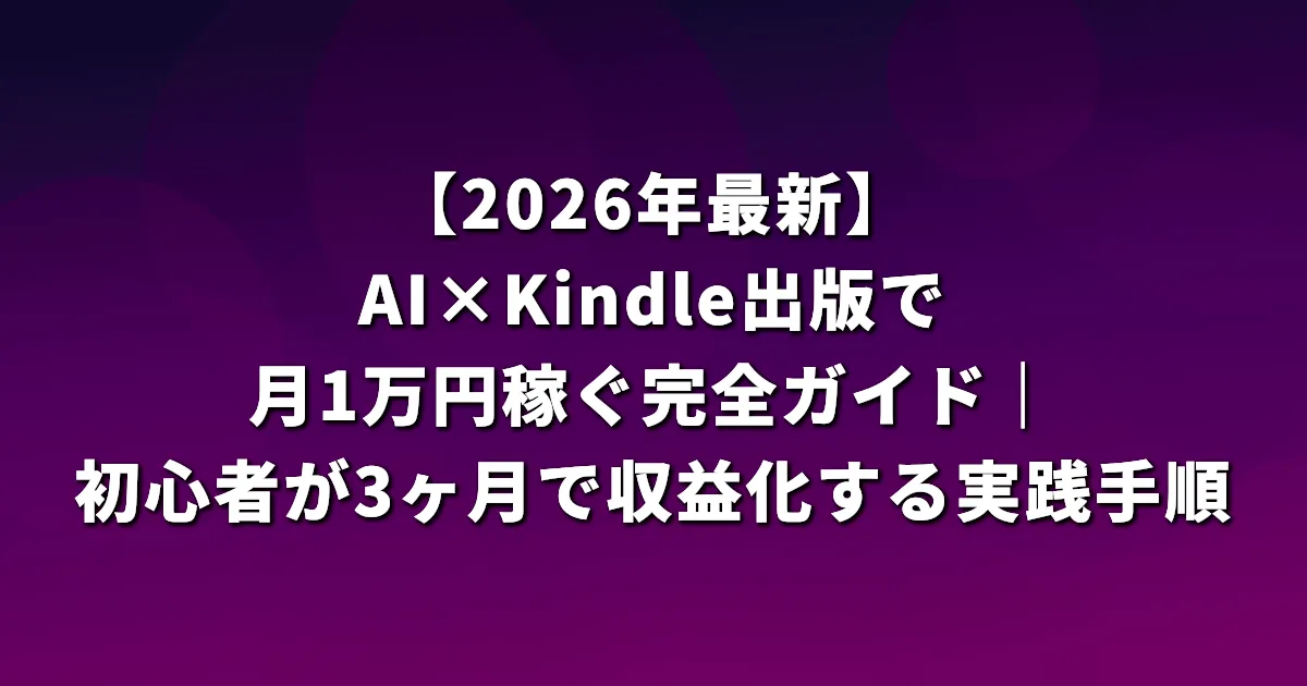 AI記事代行副業で月5万円稼ぐ完全ガイド|2026年最新の始め方と実践テクニック AI文章作成の案件で月5万円稼ぐ完全ロードマップ【2026年版】 【2026年最新】AI×Kindle出版で月1万円稼ぐ完全ガイド|初心者が3ヶ月で収益化する実践手順 ChatGPTコピーライティング副業で月15万円稼ぐ完全ガイド【2026年最新】
