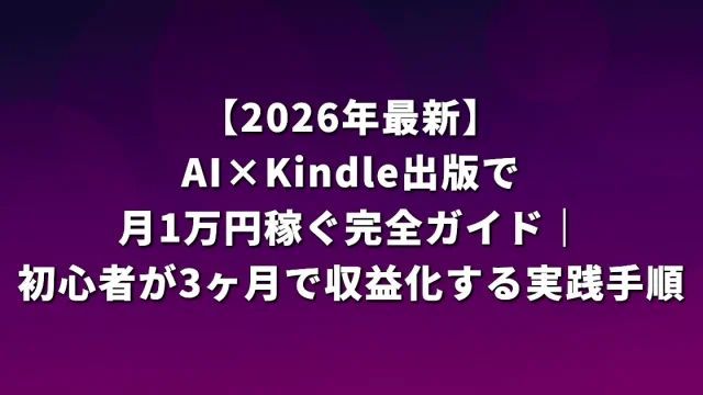 【2026年最新】AI×Kindle出版で月1万円稼ぐ完全ガイド|初心者が3ヶ月で収益化する実践手順