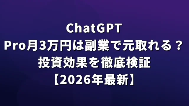 ChatGPT Pro月3万円は副業で元取れる?投資効果を徹底検証【2026年最新】